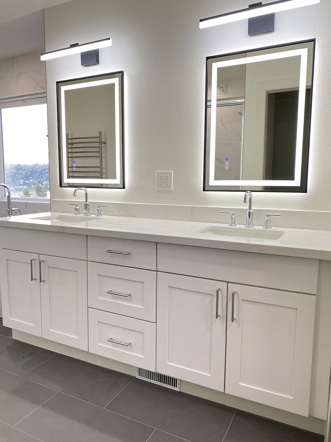 This project involved a complete master bathroom remodel in Edmonds, WA. The existing bathroom felt outdated, closed off, and lacked comfort features expected in a modern primary suite. The homeowner wanted a brighter space that felt connected to the bedroom while improving daily functionality and long-term durability.
